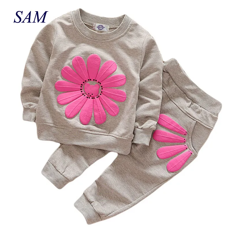 Новинка 2019 года, весенне-осенний комплект с цветочным принтом для девочек, корейский вариант детского костюма с длинными рукавами и цветочн...
