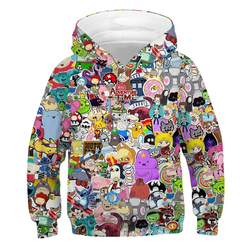 Толстовки с героями мультфильмов; толстовка с капюшоном для девочек и мальчиков с 3D принтом; детские толстовки в стиле хип-хоп; Детская уличная одежда; пуловер с длинными рукавами