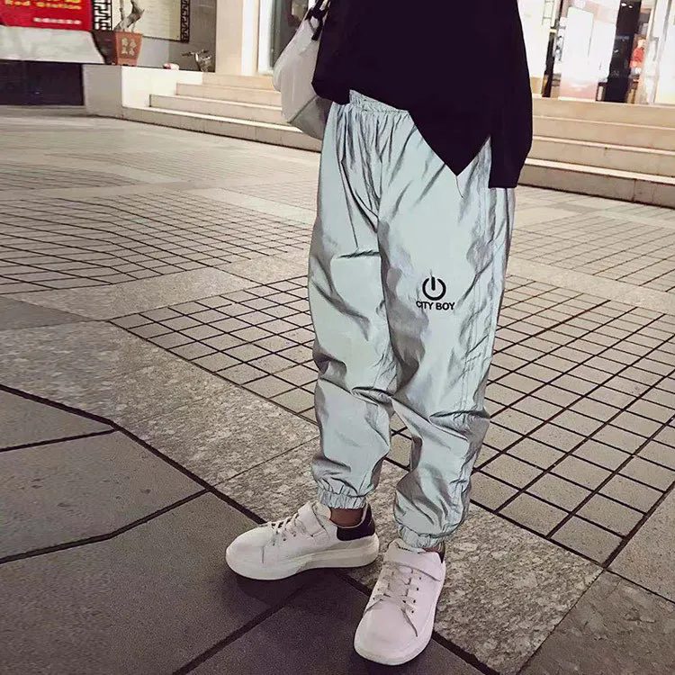 Светоотражающие детские штаны девять штанов повседневные штаны-шаровары в стиле хип-хоп, штаны с эластичной резинкой на талии 3M модные штан...