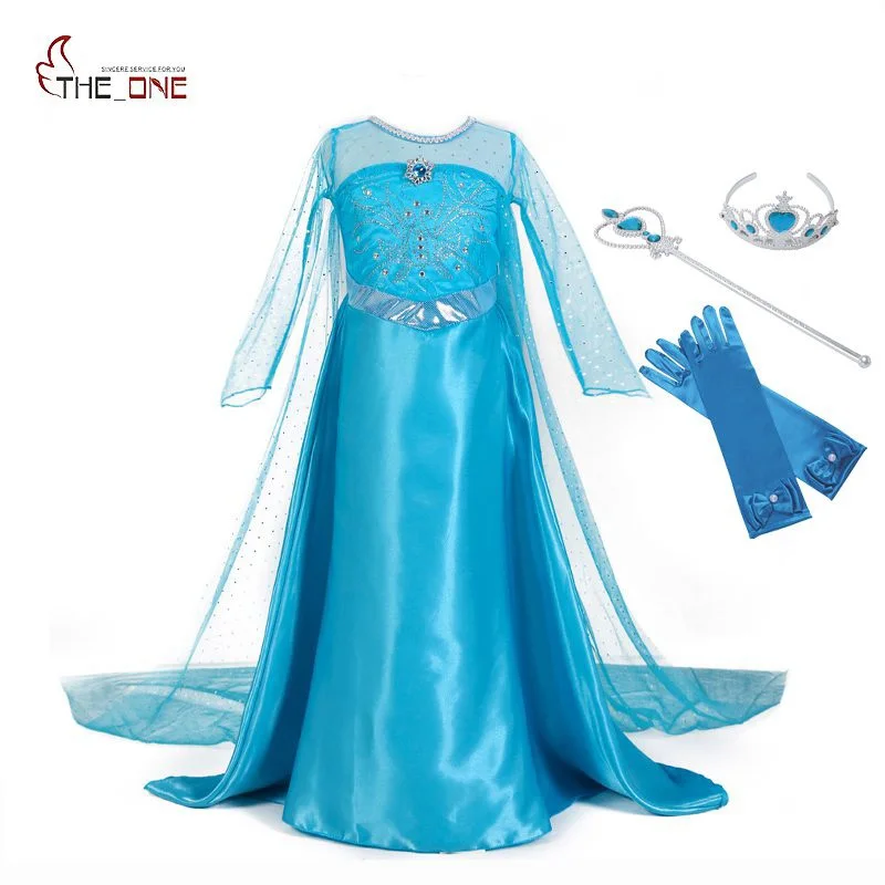 MUABABY/платья принцессы Эльзы для девочек, детское платье с длинными рукавами и бусинами, нарядный костюм Снежной королевы, длина до пола, прин...