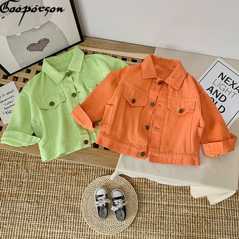 Gooporson/Осенняя Куртка для девочек; Модные джинсовые куртки для маленьких девочек; Пальто в Корейском стиле; Милая верхняя одежда для маленьких детей; Детская одежда