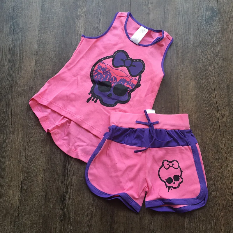 Для девочек Летняя футболка с короткими рукавами костюм хлопка пляжные шорты монстра комплект из двух предметов От 4 до 16 лет дети Высокое ш...