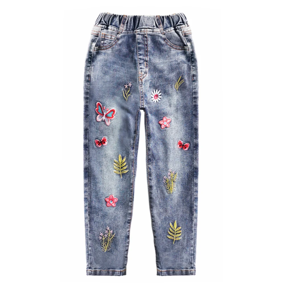 Chumhey/джинсы для девочек от 5 до 14 лет весенние хлопковые эластичные мягкие джинсовые штаны детские брюки одежда для малышей с вышитыми цвета...