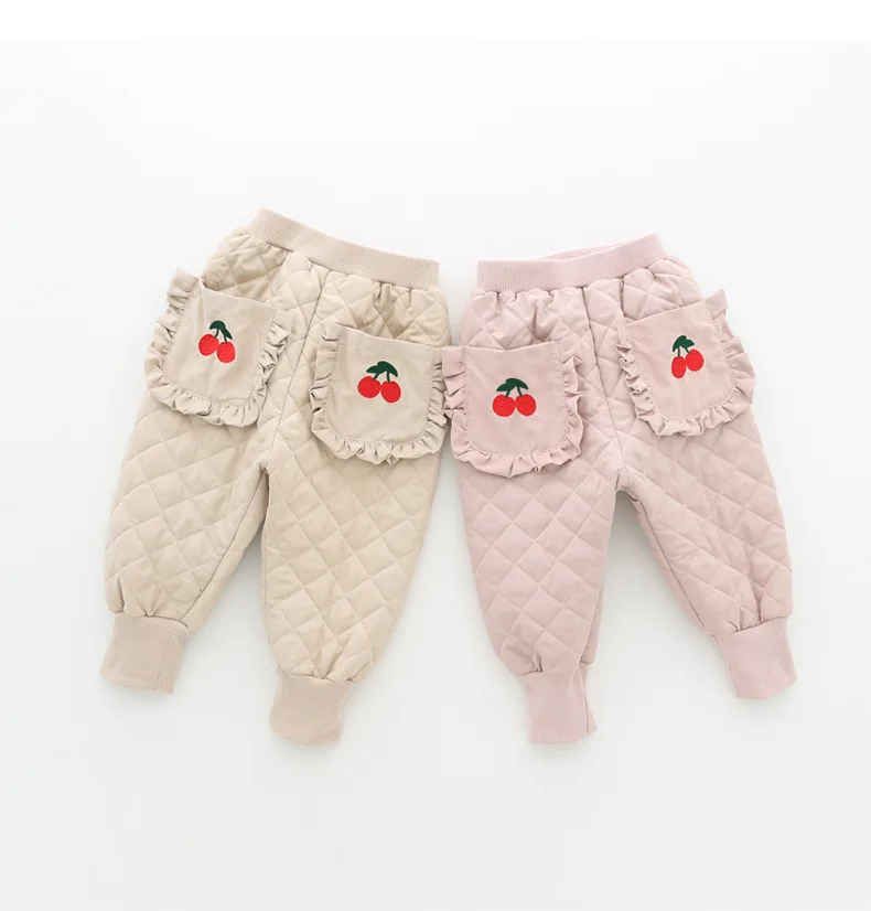 Осенне-зимние брюки новые детские штаны с вышивкой вишни для маленьких девочек милые штаны с карманами Детские хлопковые брюки