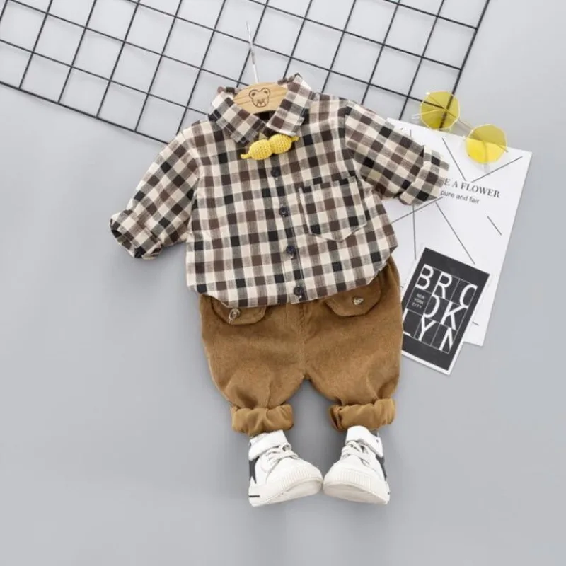 Весенняя одежда для детей; комплект одежды с длинными рукавами; детская рубашка для мальчиков + брюки; комплект из 2 предметов; От 1 до 4 лет; хлопковая верхняя одежда для малышей