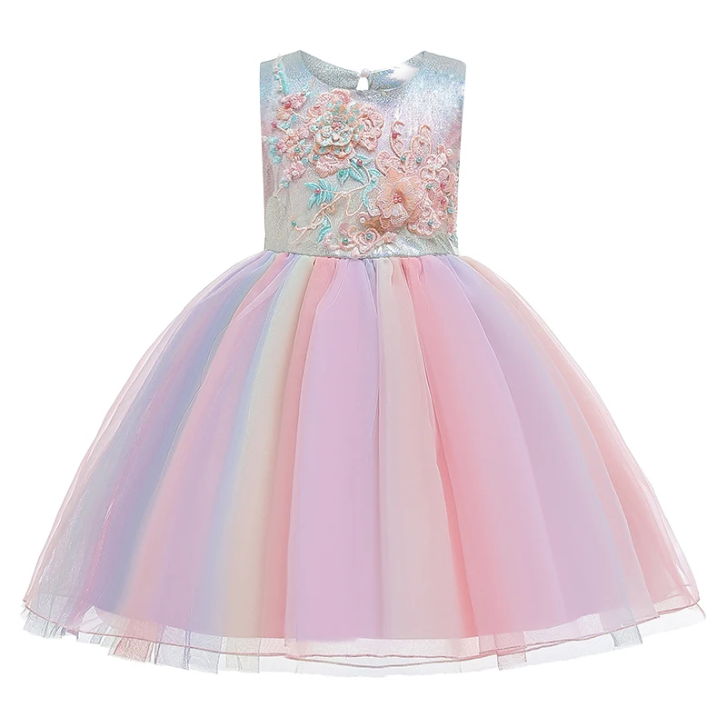 Детское платье с единорогом для девочек; Бальное платье с вышитыми цветами; Платье принцессы для маленьких девочек; Элегантное праздничное платье на день рождения