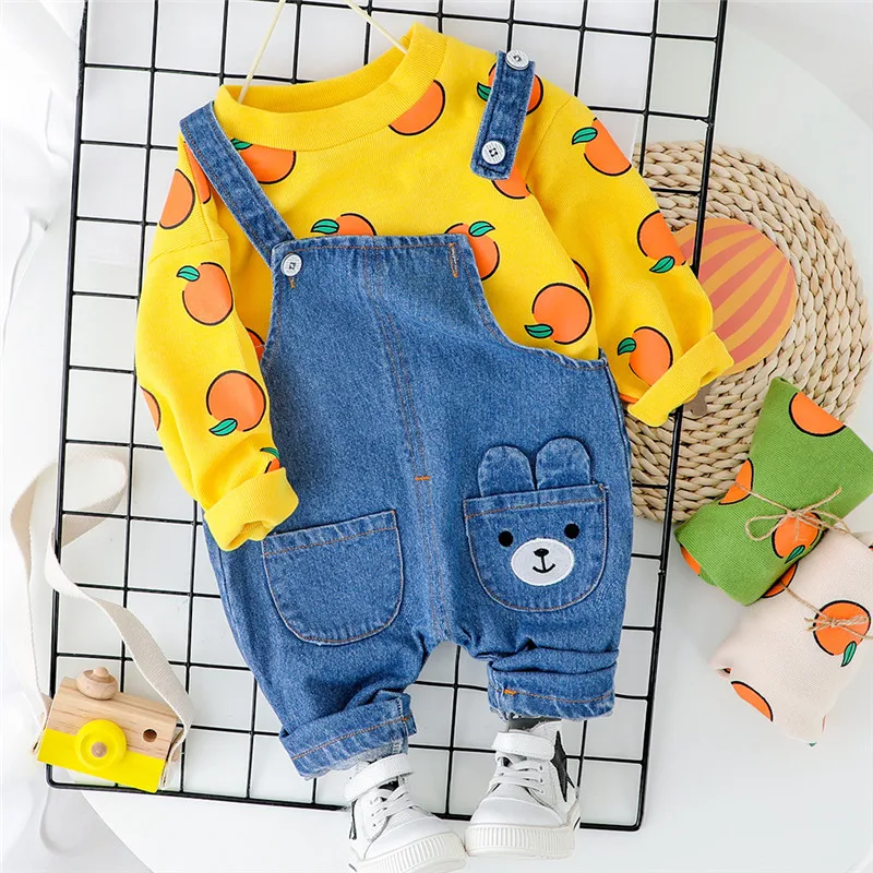 Комплекты одежды для маленьких мальчиков и девочек, 2020 весенняя одежда с длинными рукавами для новорожденных мальчиков, футболка + комбинезон, спортивный костюм из 2 предметов, повседневный комплект для малышей