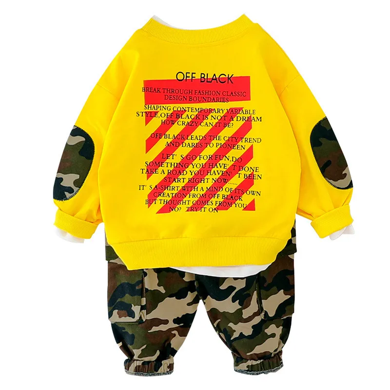 Новая детская одежда весна-осень, детская повседневная рабочая одежда, свитер + камуфляжные штаны, комплект одежды из 2 предметов для мальчиков