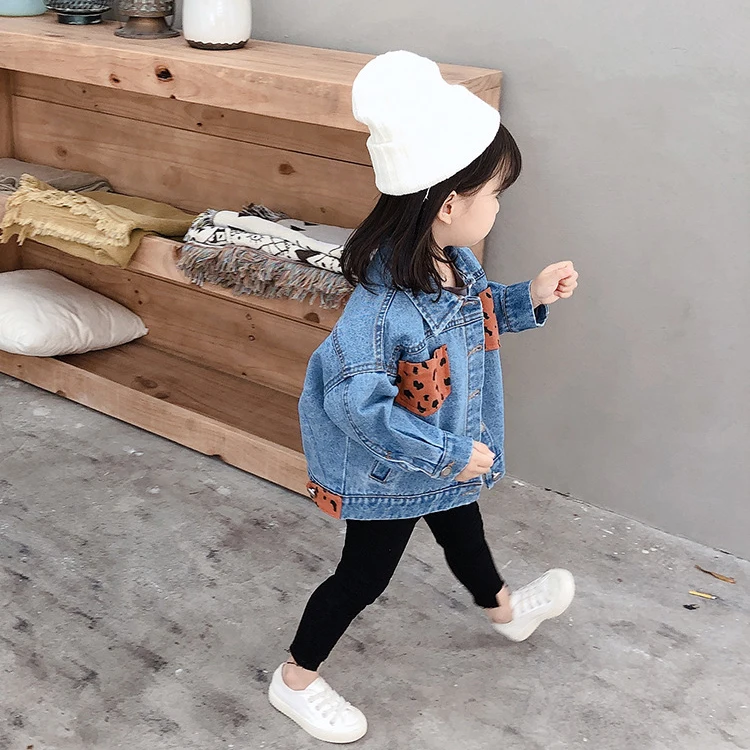 Весенне-осеннее повседневное джинсовое пальто для мальчиков и девочек, джинсовая куртка с карманами леопарда, 2020