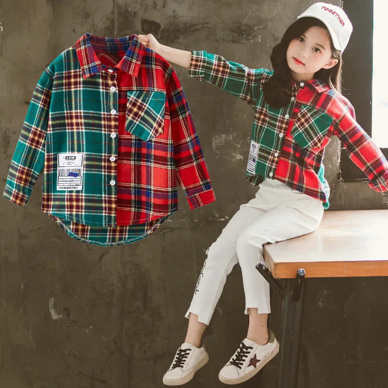 Коллекция 2019 года, модная блузка для девочек Осенняя клетчатая прошитая рубашка разных цветов Детская одежда для подростков, блузки для дев...