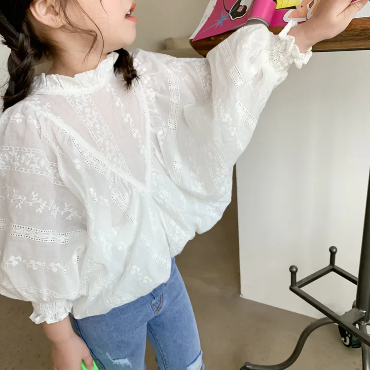 2020 г. Детские хлопковые блузки с вышитыми цветами и рукавами «летучая мышь» кукольная рубашка для маленьких девочек топ белого цвета, Детск...