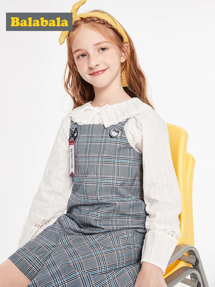 Balabala/детская одежда, платье для девочек, Новинка осени 2019, детское платье принцессы, модное клетчатое платье на бретелях