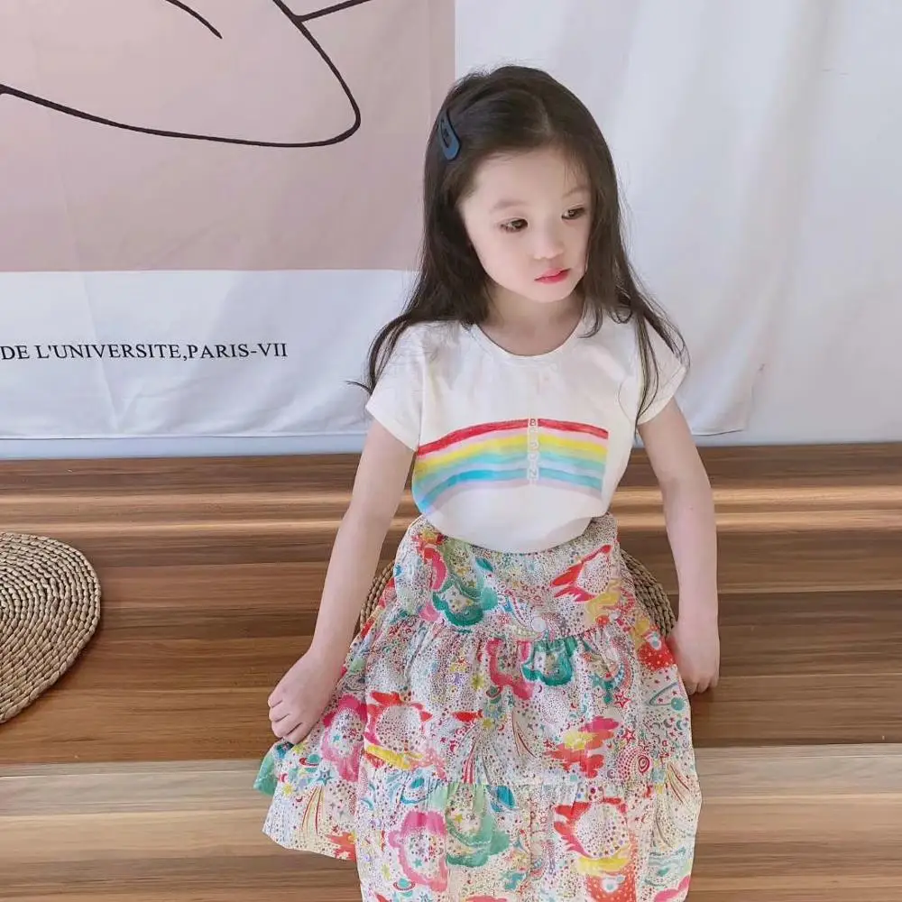 Предпродажа, лето 2020, 15 апреля, топы для девочек, белые футболки с радужным узором, хлопковые детские топы