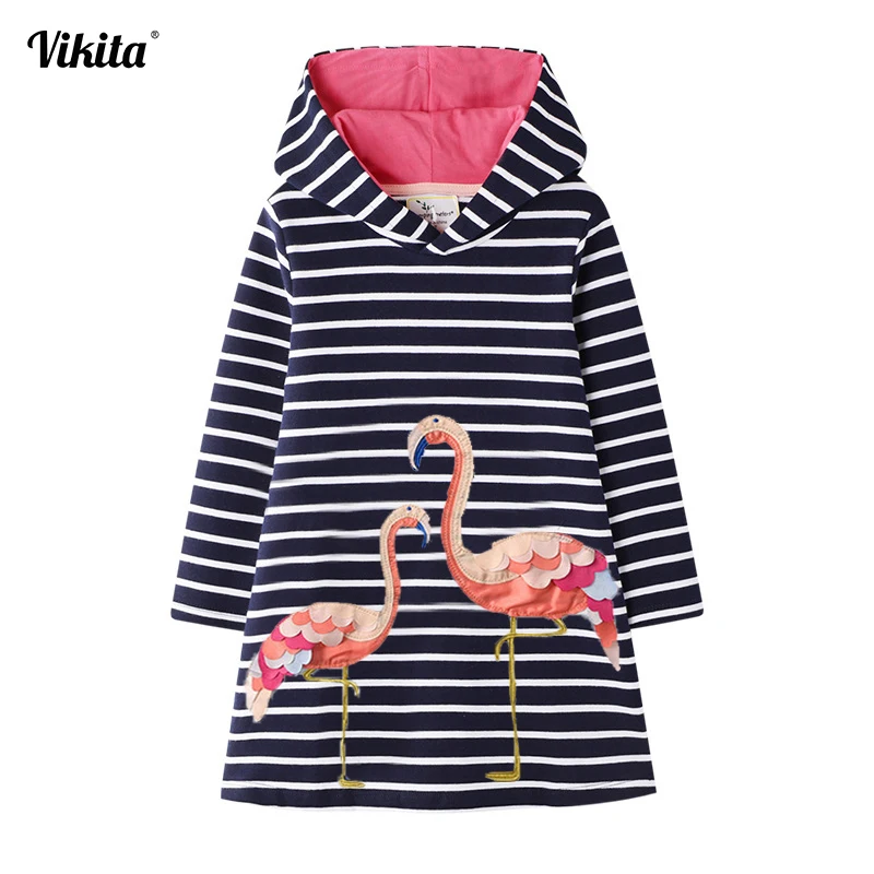 VIKITA/платье для девочек-подростков; зимние толстовки с длинными рукавами; плотные теплые платья фламинго для девочек; детская одежда с рисунком единорога