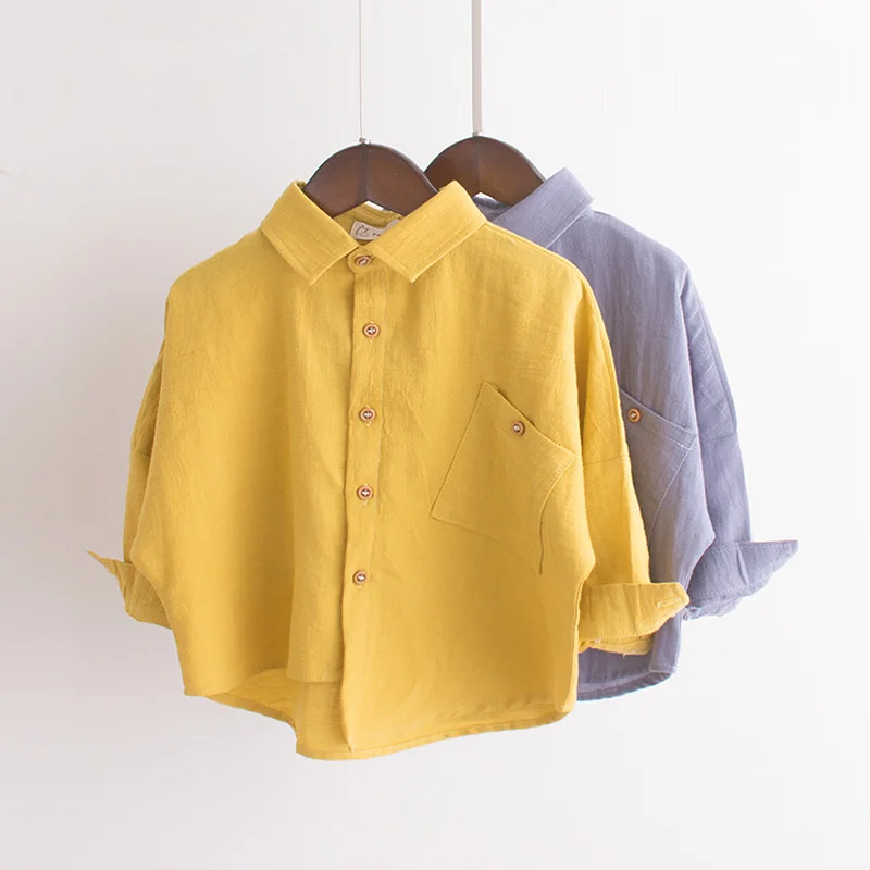 Демисезонный рубашка для мальчиков Повседневное карман хлопок Детские топы; Верхняя одежда длинный рукав детская блузка рубашка BC370