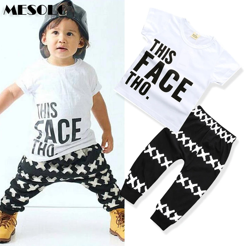 Комплект модной одежды для мальчиков; одежда для малышей; футболка с короткими рукавами и штаны; комплект из 2 предметов; Повседневный хлопк...