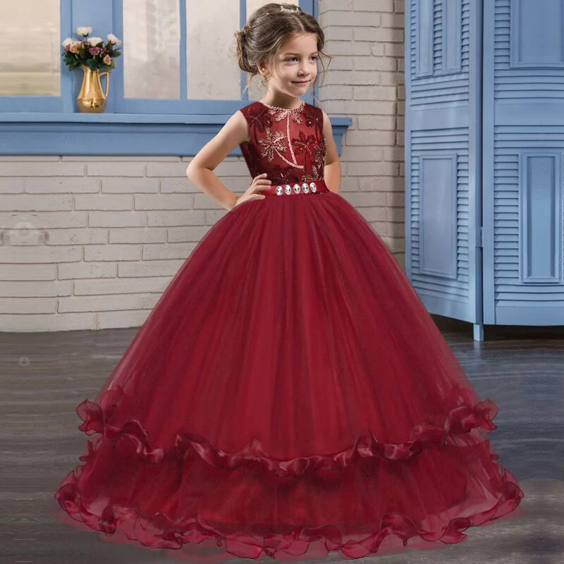Розничная продажа, платье с цветочной вышивкой для девочек, длинное свадебное платье для девочек с сетчатым поясом, элегантное детское плат...