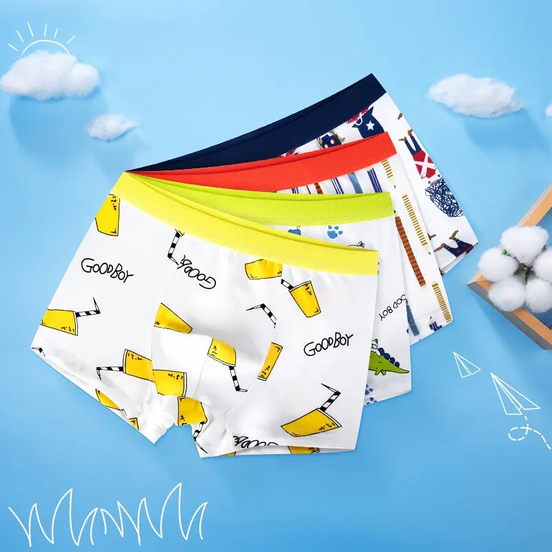 Хлопковое нижнее белье для мальчиков, 4 предмета детские трусы-боксеры высокого качества с рисунком для детей 3, 4, 6, 8, 10, 12 лет, детская одежда, RKU183003