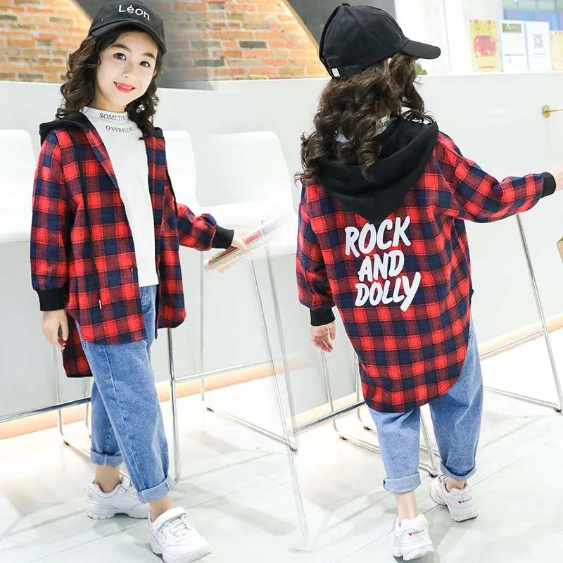 Модная Осенняя блузка для девочек, Рубашки классические красные рубашки в клетку с длинными рукавами для девочек, школьные топы и блузки дл...