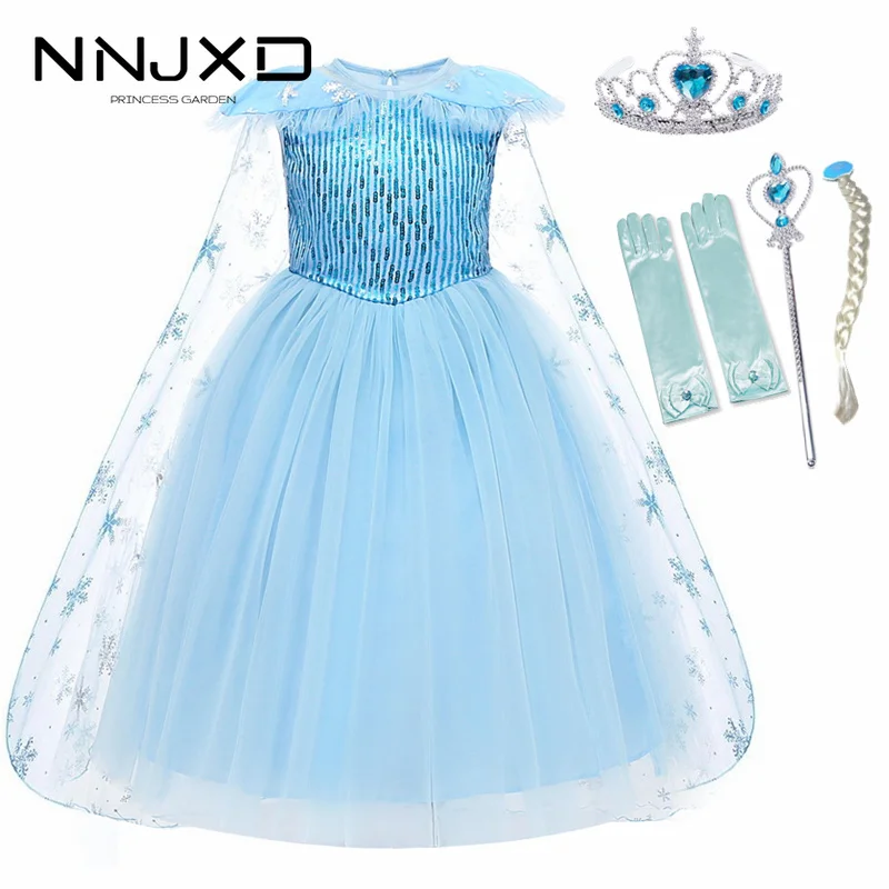 Платье Эльзы и Анны для девочек, вечерние платья Снежной королевы с блестками и снежинками для девочек, модный костюм для косплея на Хэллоуи...