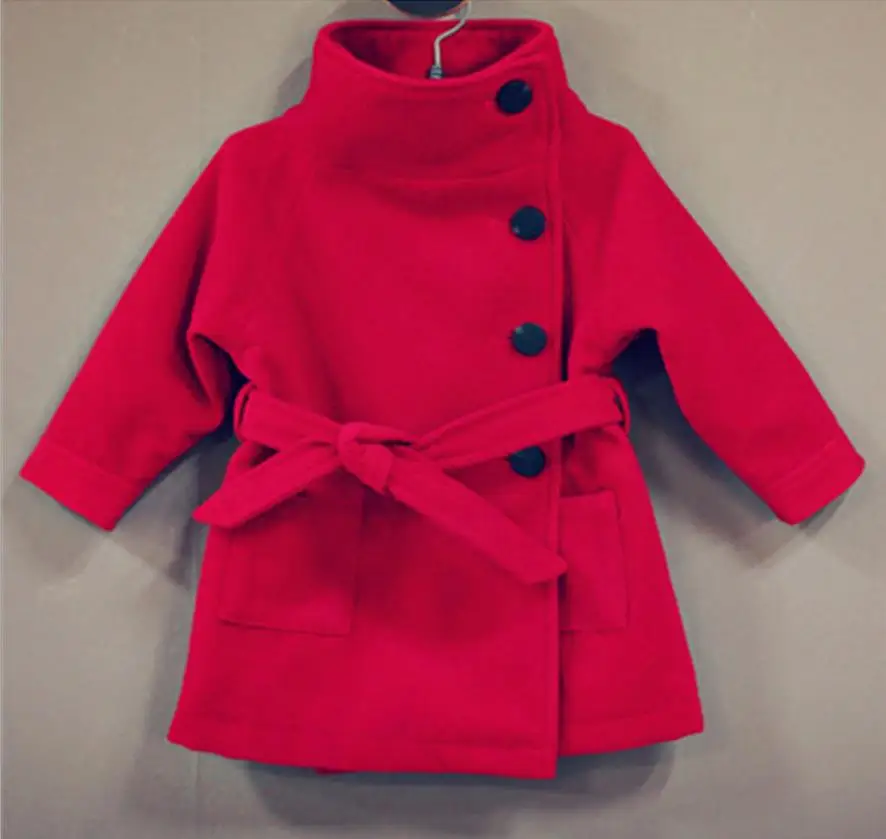 Модные зимние куртки для девочек, 2016 шерстяная верхняя одежда, плотное Двухслойное Детское пальто, детская куртка с длинными рукавами и поя...