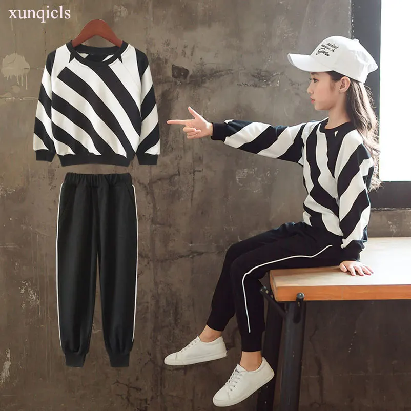 Весенне-осенние комплекты одежды для девочек детские спортивные костюмы Детская футболка с длинными рукавами + штаны комплект верхней одежды из 2 предметов для девочек