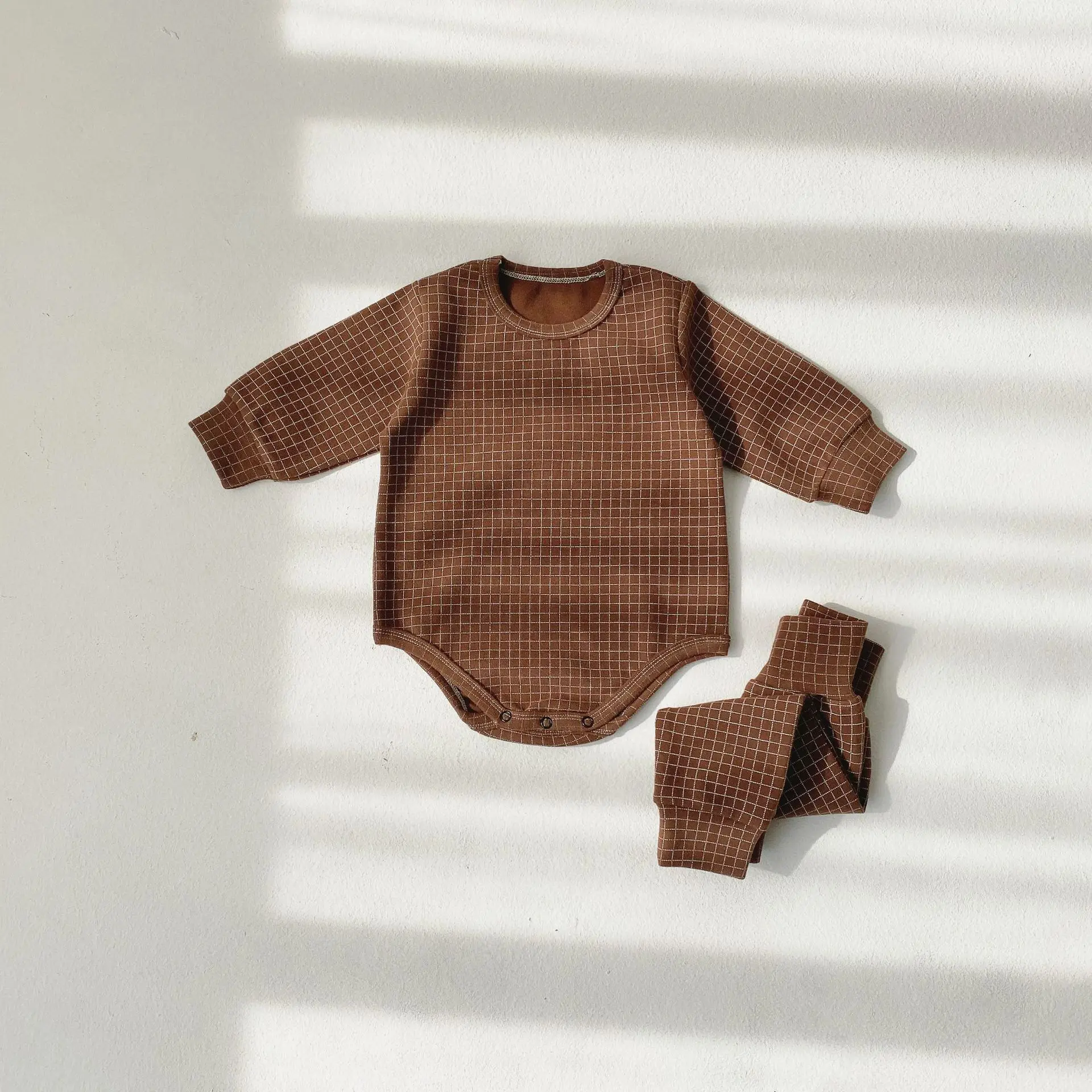 Новинка 2020 года; костюм для новорожденных; одежда для маленьких мальчиков и девочек; клетчатый комбинезон; комплект с длинными штанами; весе...