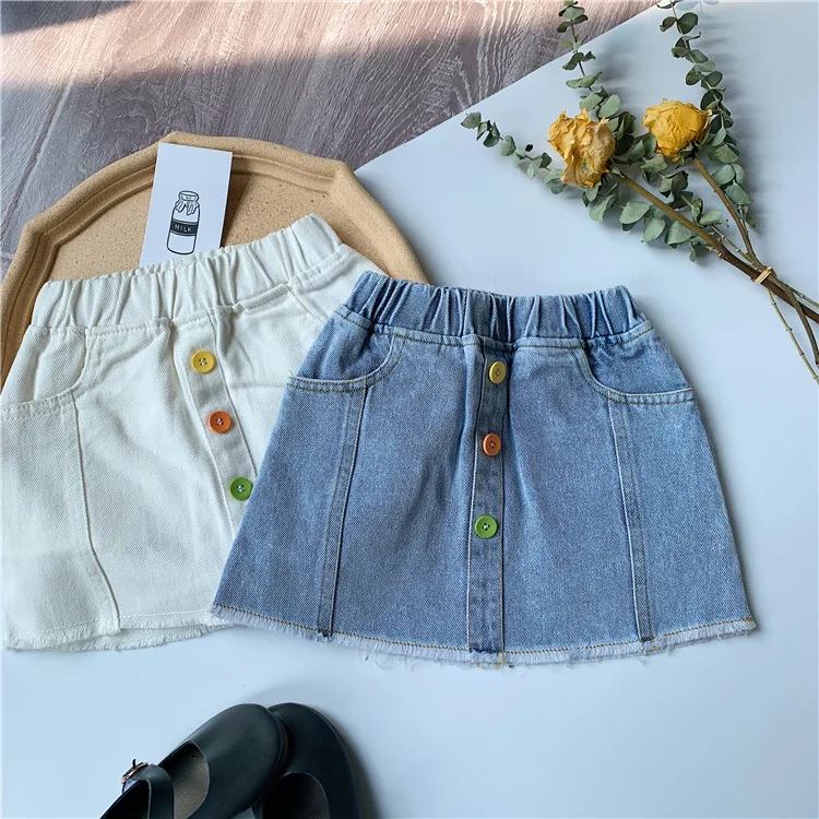 3507 New Korean Colored Button Casual A-line Denim Children's Skirt Jeans Skirt For Girls Kids Summer Skirts Children's Wear