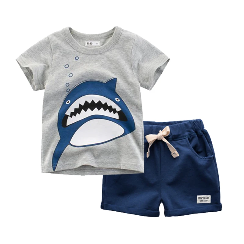BINIDUCKLING/комплект летней детской одежды для маленьких мальчиков 2020, комплекты детской одежды из 100% хлопка с изображением акулы для маленьких мальчиков 2-7 лет, 2 предмета