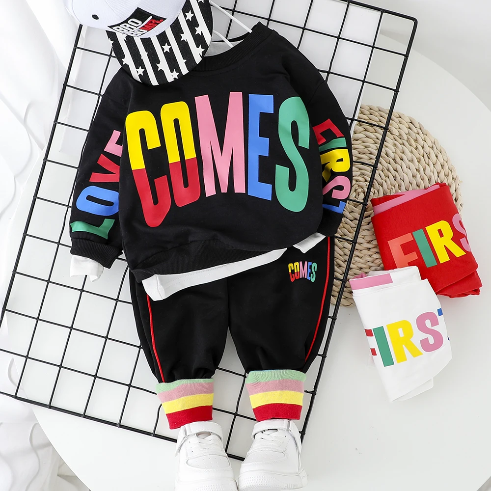 Модный комплект одежды для маленьких мальчиков, футболка с буквенным принтом + штаны, 2 предмета, новинка 2020 года, весенне-осенняя верхняя одежда для маленьких мальчиков, От 1 до 4 лет