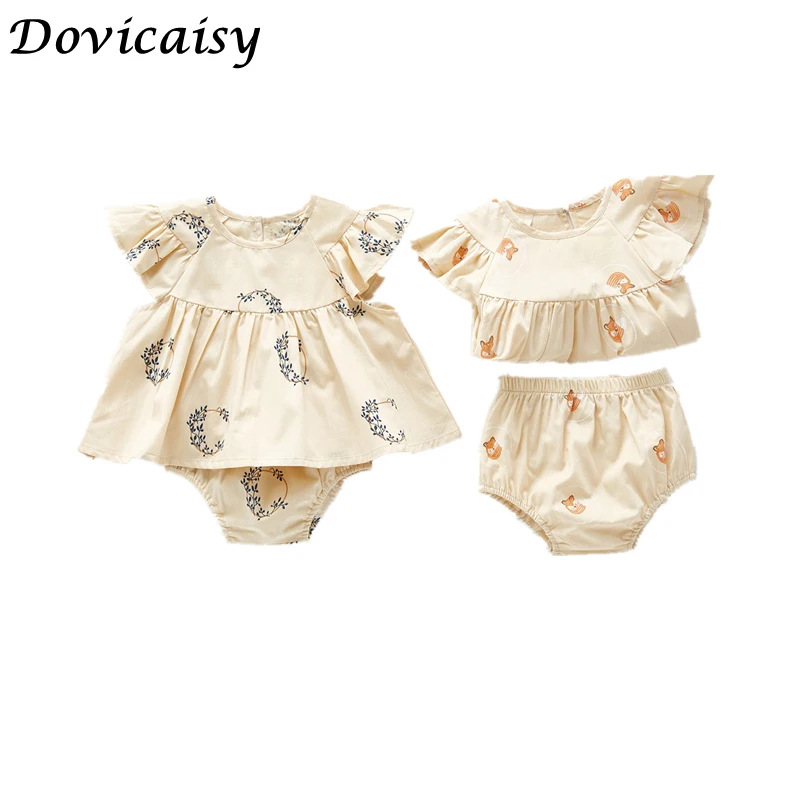 Лето 2020; комплект из 2 предметов для новорожденных девочек; топ с цветочным принтом и рукавами-крылышками; юбка + однотонные шорты; комплекты одежды; летний костюм