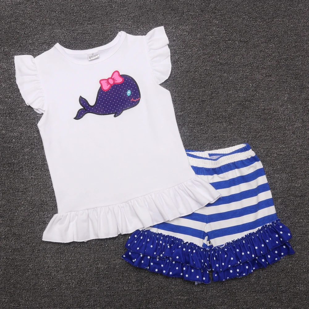Одежда для девочек; дизайнерская весенняя одежда для девочек; Детская кофта с Китом и оборками; комплекты с шортами; детская одежда; Одежда для девочек