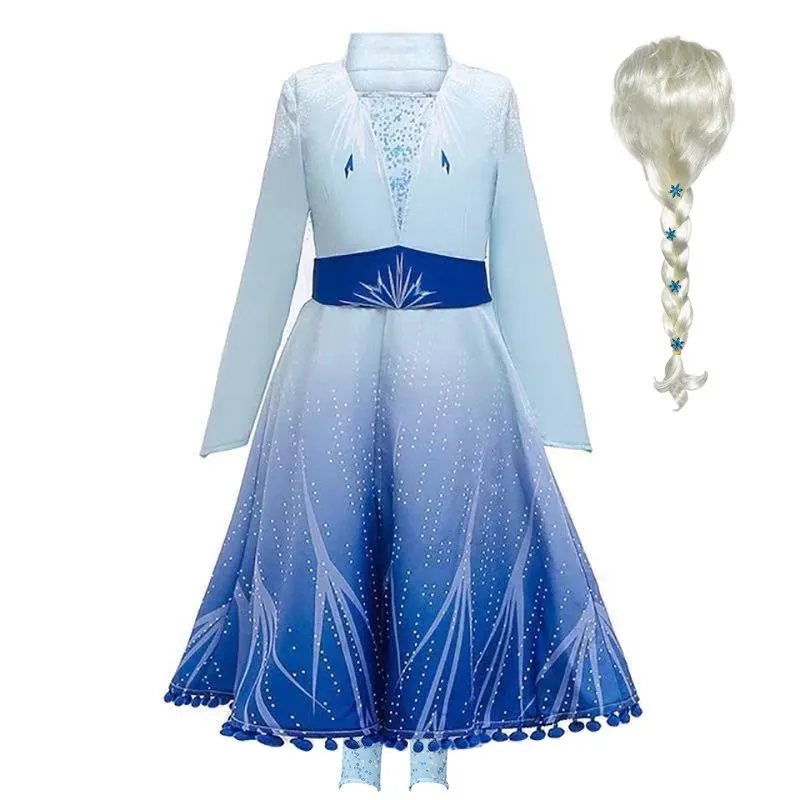 YOFEEL, новое нарядное платье «Эльза 2», праздничный костюм для девочек, одежда Снежной королевы, рождественский костюм Эльзы, голубое платье, леггинсы, комплект, платья