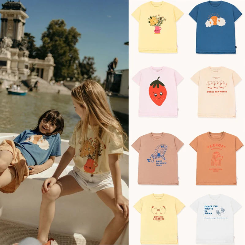 Детские футболки Коллекция 2020 года, TC, новые брендовые весенне-летние футболки с коротким рукавом для мальчиков и девочек с мультяшным принтом, Детские хлопковые топы, футболки, одежда