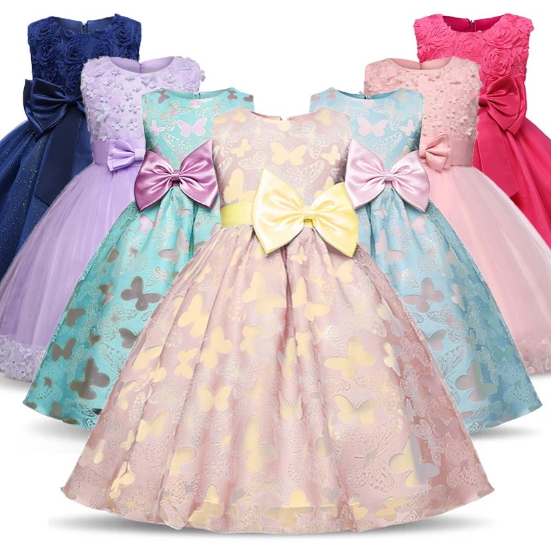 От 2 до 9 лет Детские платья праздничная одежда 2017 модное праздничное платье Младенческая костюм принцессы с бантом детское праздничное пла...