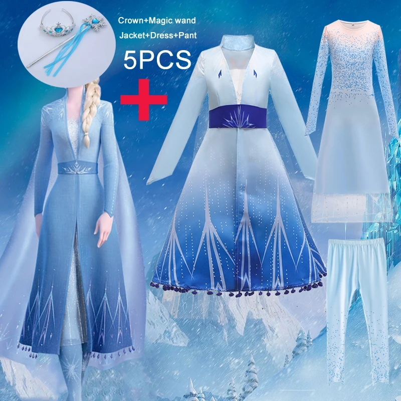Лето 2020; Платье Снежной Королевы из 2 предметов; Платье Анны и Эльзы для девочек; Детские платья для девочек; Кружевное платье принцессы на День рождения; Платье для костюмированной вечеринки