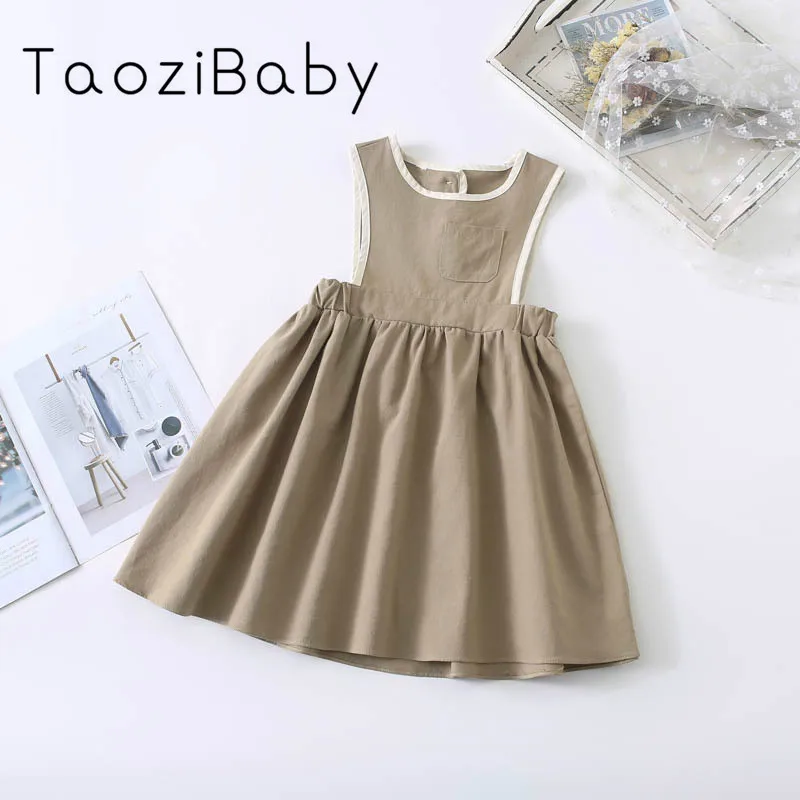 Детские платья для девочек; Новинка 2020 г.; весеннее корейское детское платье; асимметричное контрастное платье-жилет для девочек; платья без рукавов для девочек