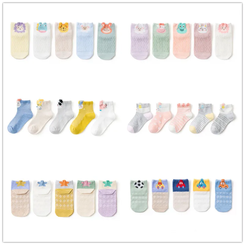 5 пар/лот, тонкие сетчатые детские носки для детей от 1 до 12 лет весенне-летние дышащие носки для маленьких девочек и мальчиков милые Носки с рисунком для малышей
