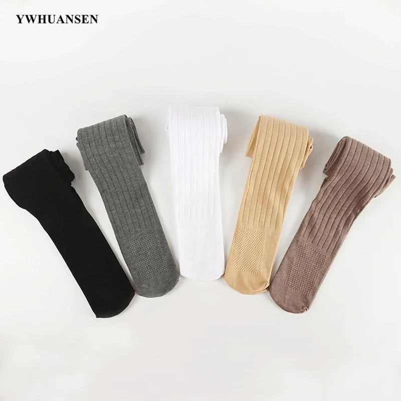 YWHUANSEN/весенние колготки из чесаного хлопка для девочек от 4 до 12 лет Детские эластичные колготки в полоску белого, черного, серого, коричневого цветов