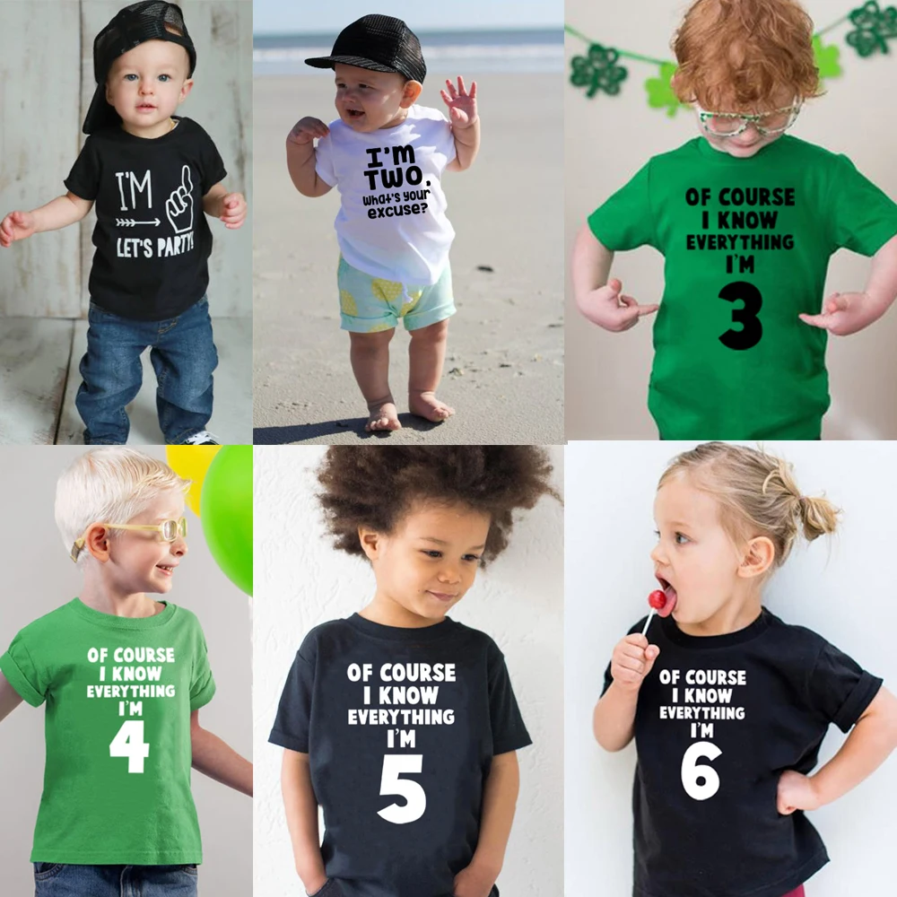 Конечно, я знаю, что все, что я 3/4/5/6 забавные детские футболки на день рождения Футболка для маленьких мальчиков Футболки для девочек с корот...