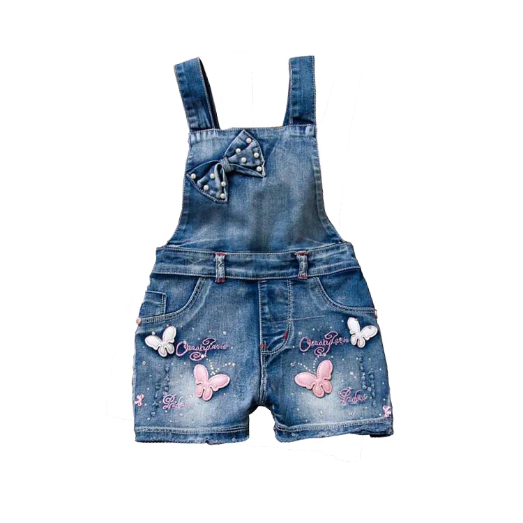 Бесплатная доставка 2019 Весна-осень девушки лук комбинезоны детские джинсовые комбинезоны Детский Бабочка милые джинсы