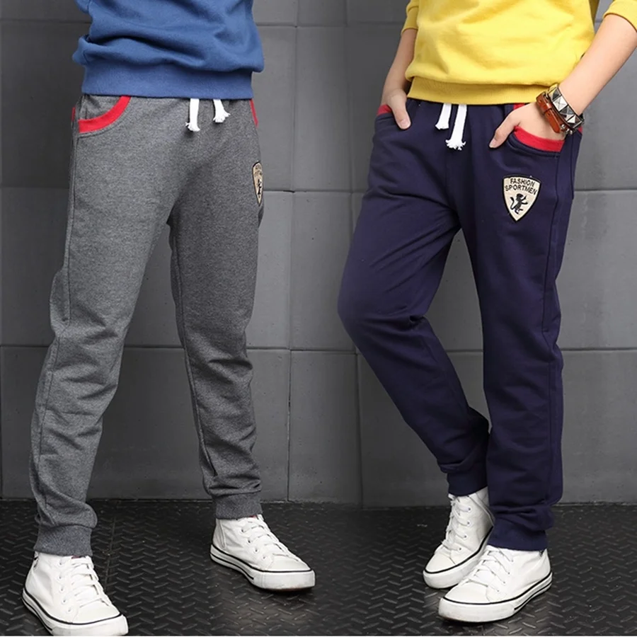 Famli/для мальчиков-Подростков Спортивные штаны детей Демисезонный Повседневное Твердые полный Прямые хлопковые леггинсы брюки для подростк...