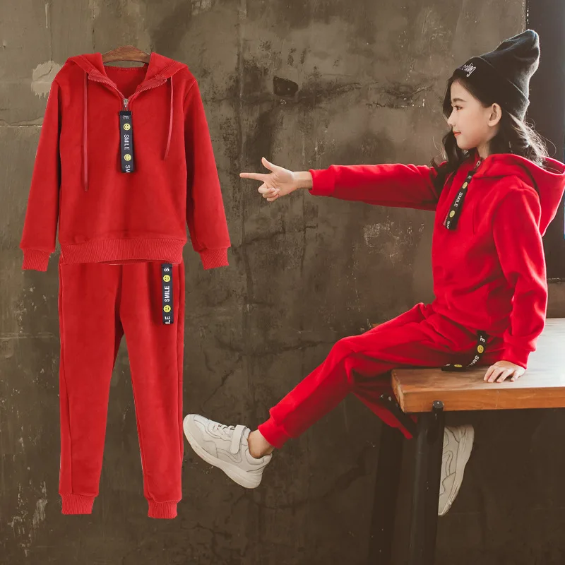 Комплект одежды для девочек, толстовка с капюшоном и длинными рукавами и штаны, детский спортивный костюм для девочек, модный спортивный ко...