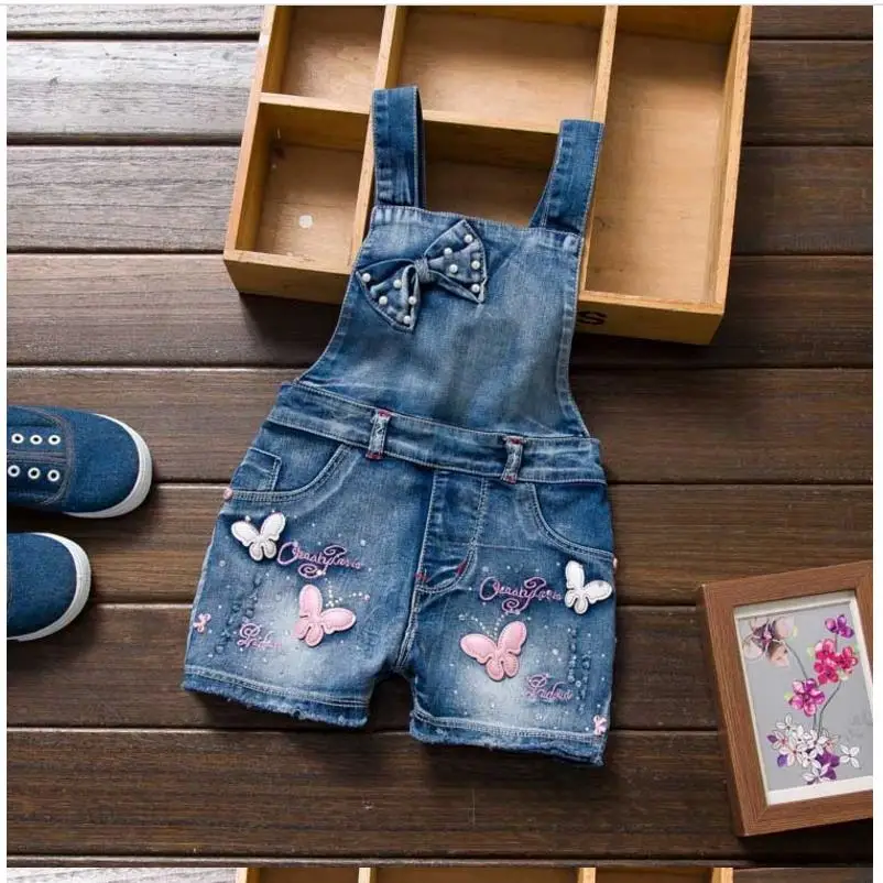 2018 новые джинсовые комбинезоны для девочек, летние детские ковбойские шорты на бретелях, корейский джинсовый комбинезон, детский однотонны...