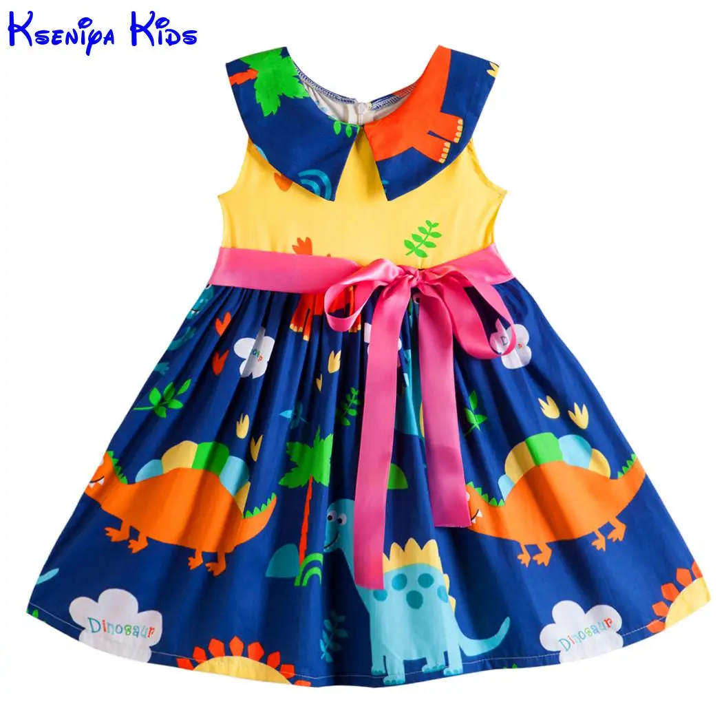 Kseniya Kids/детские большие маленькие платья для девочек принцессы без рукавов с воротником Питер Пэн ленты с бантом летние животного платье хл...