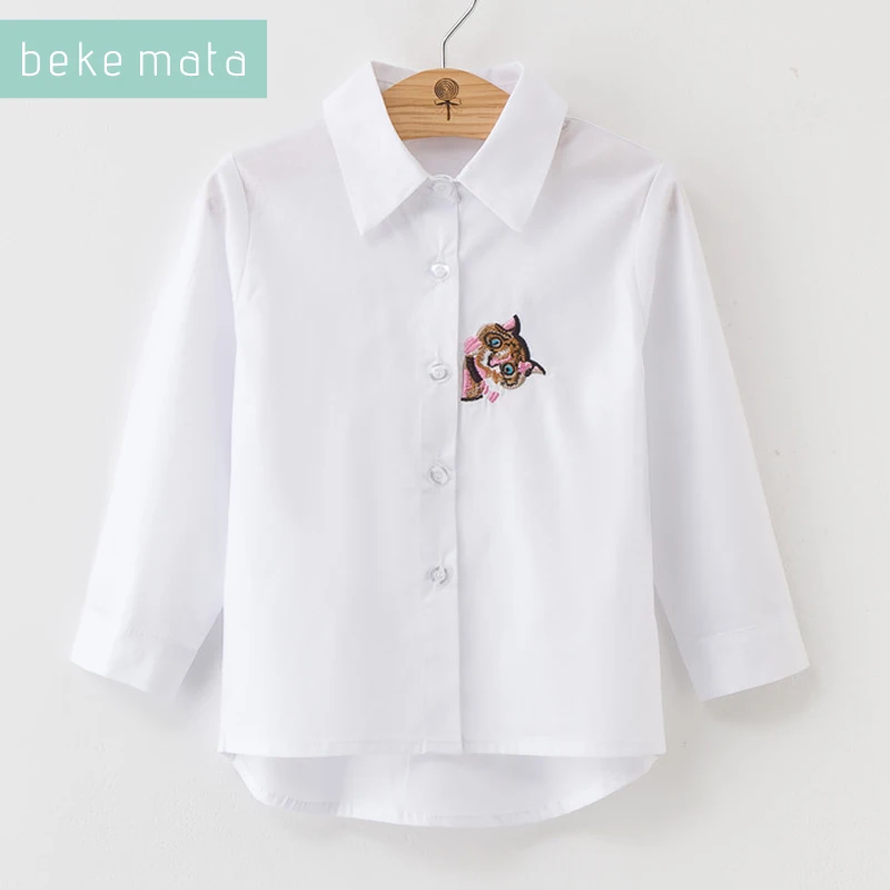 BEKE MATA белые школьные блузки для девочек осень 2018 мультфильм сова вышивка дети девочка рубашка с длинным рукавом детская блузка От 3 до 11 лет