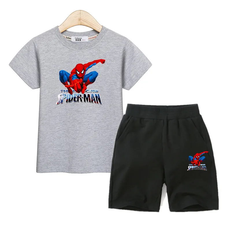 Летние топы и штаны для мальчиков костюм Человека-паука, Детский комплект из 2 предметов, костюмы с короткими рукавами и принтом, детская одежда, 100% хлопок, одежда для мальчиков