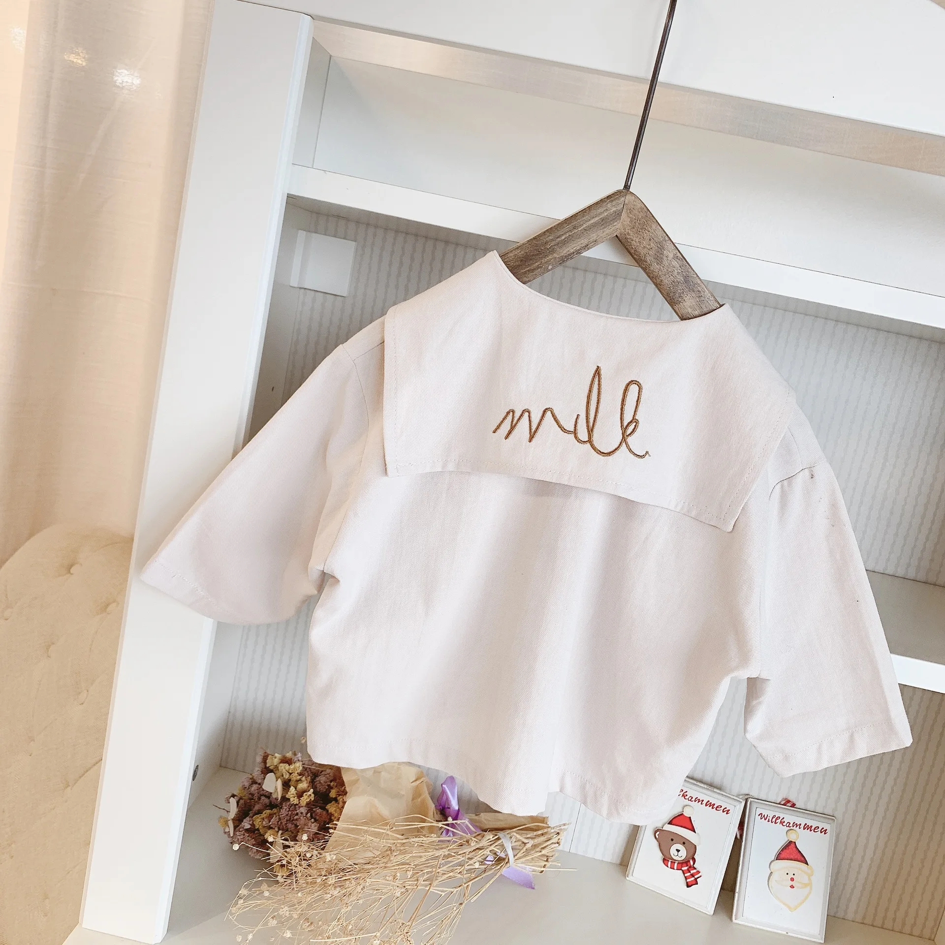Весна 2019 девушки корейский хлопок вышитые большой отложным воротником новая рубашка для девочек футболка из хлопка для девочек Блуза Топ