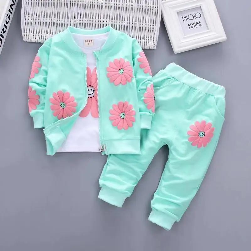 Детская одежда с розовыми цветами 2019 г., весенне-осенняя футболка с кроликом для мальчиков и девочек + пальто + штаны комплекты из 3 предметов ...