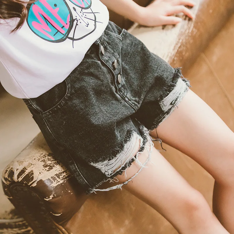 Детские джинсовые шорты для девочек 10-12 лет, летние шорты с дырками, одежда для девочек-подростков